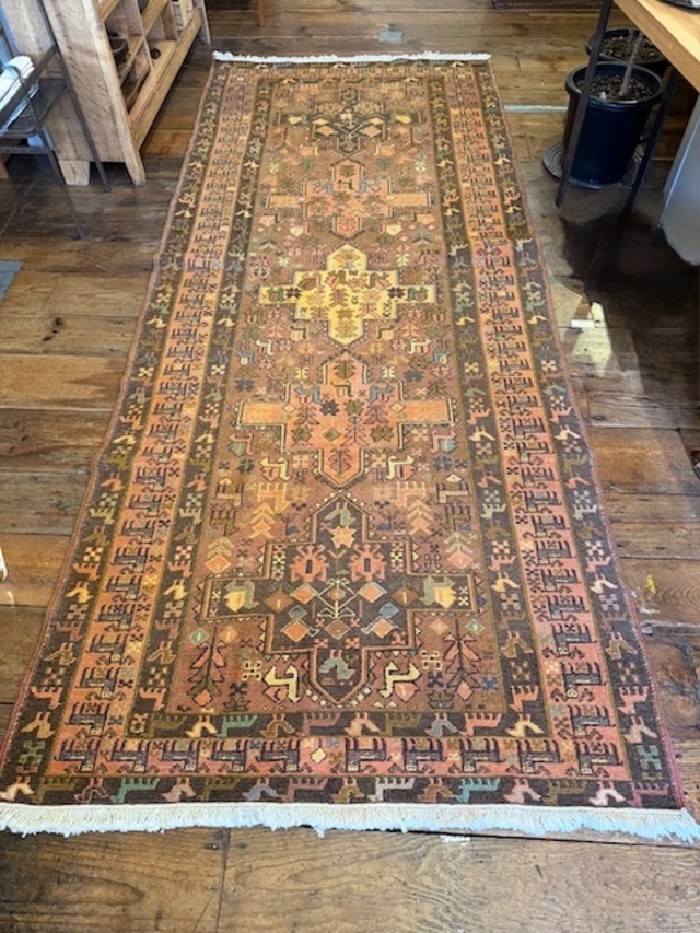 中央アジア地域のヴィンテージラグ。 ウールを植物染料で染め手織りされたものです。 しっかりとした厚みがあり裸足で踏んだときの気持ち良さを体験していただけます。 こちらはバルーチ族によるものです。 サイズ:W200 × D114㎝ 送料:地域別に算出されます。 MO-527