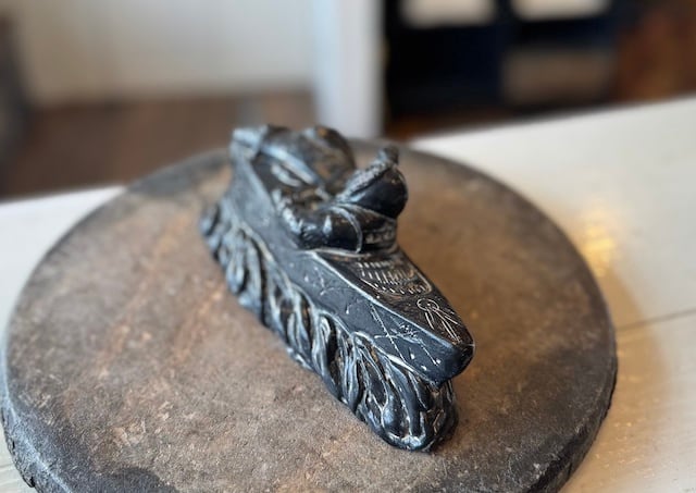 ソープストーンと呼ばれる比較的柔らかい石を加工して作られています。