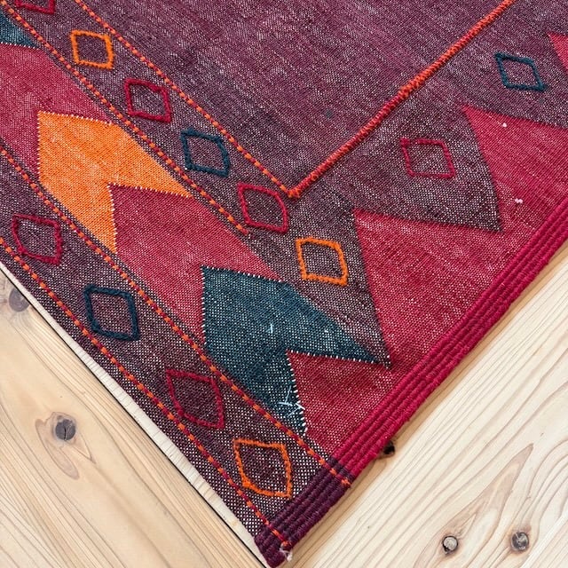 遊牧民の生活道具として伝わる伝統的な平織りの織物。