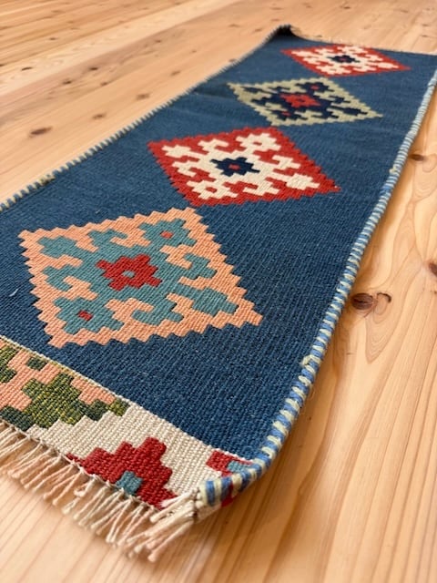 遊牧民の生活道具として伝わる伝統的な平織りの織物。