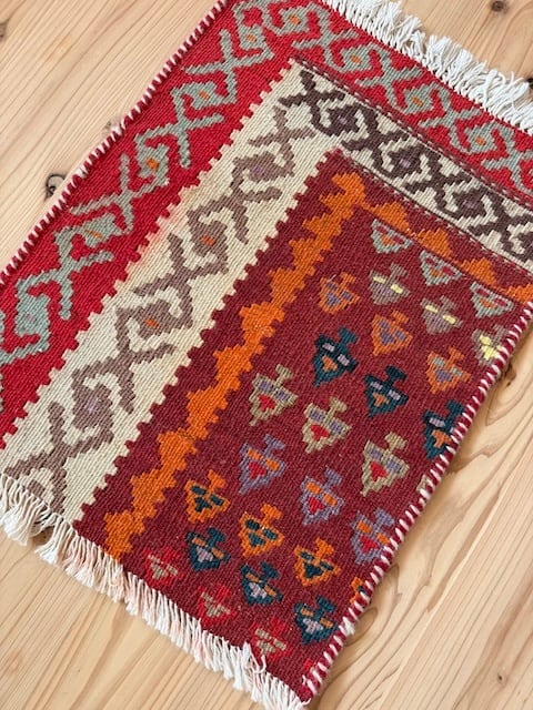 遊牧民の生活道具として伝わる伝統的な平織りの織物。