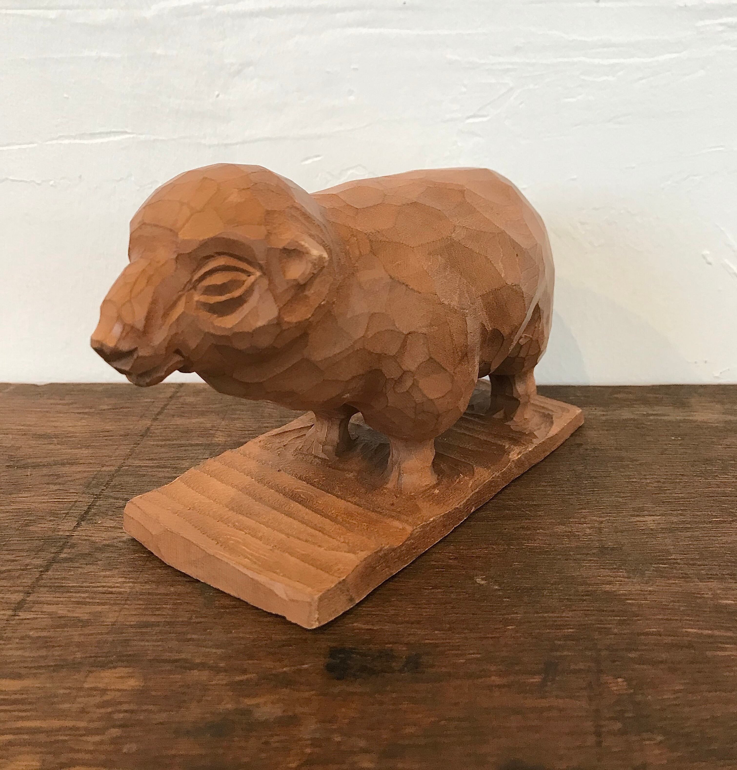 どこかシュールな羊の木彫りをインテリアにいかがでしょうか。