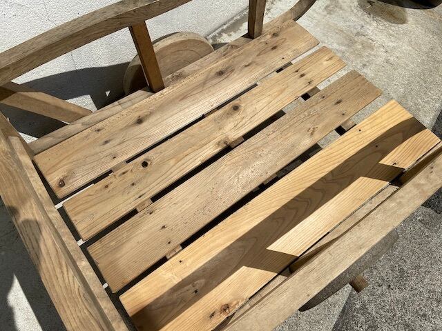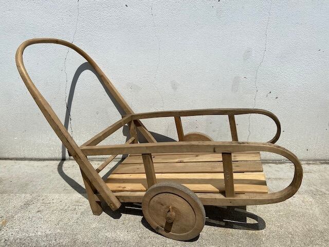 持ち手部分のハンドルや車輪など各所に手作りの味わいがうかがえます。