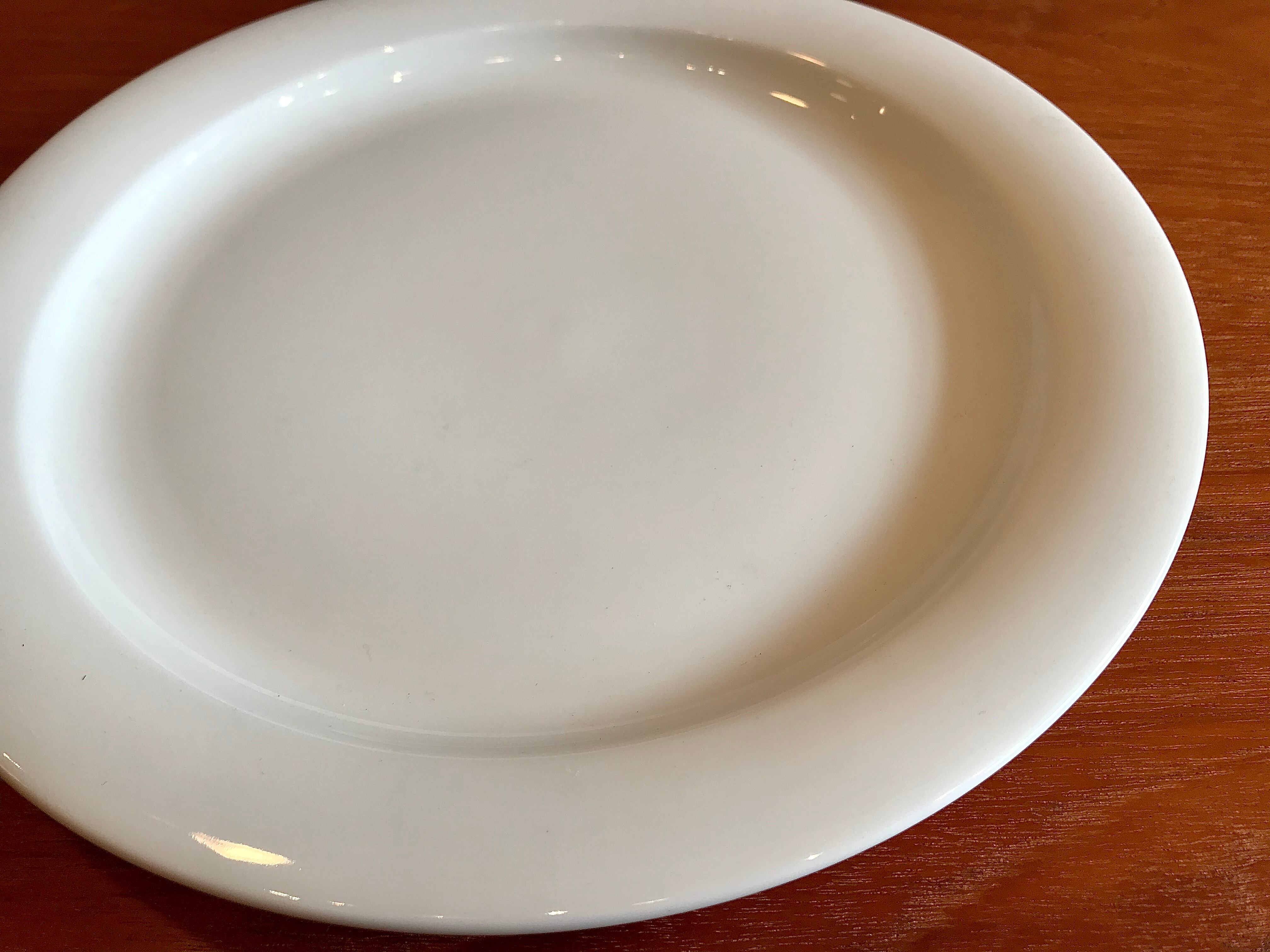 オフホワイトのシンプルな形の器です。和洋中のジャンルを問わずどんな料理にもマッチする器かと思います。ワンプレートにメインと副菜を盛り付けることができる十分なサイズです。洗い物を減らして効率化に役立ちそうですね。