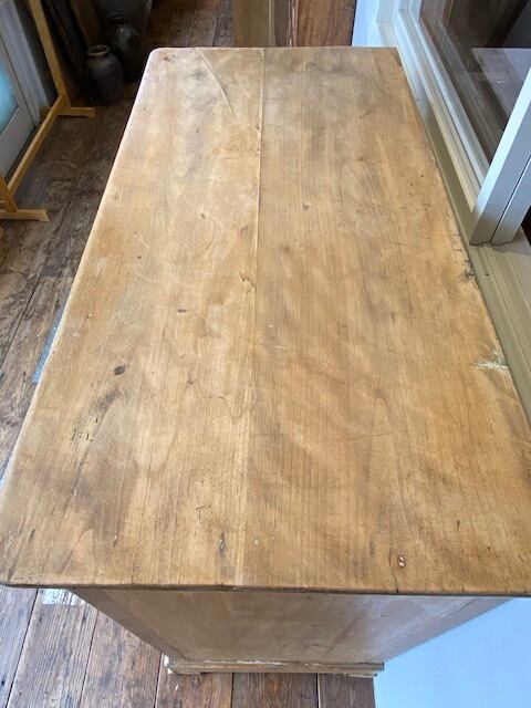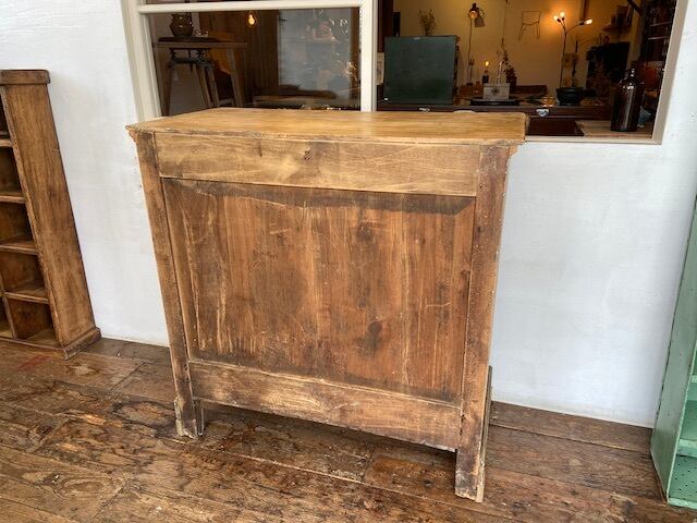天板の高さは1メートルほどありますのでカウンターとしてお使いいただくことが可能です。全体的に経年変化の味わい深い質感です。存在感もありますので店舗什器として活用していただいても間違いない一品かと思います。