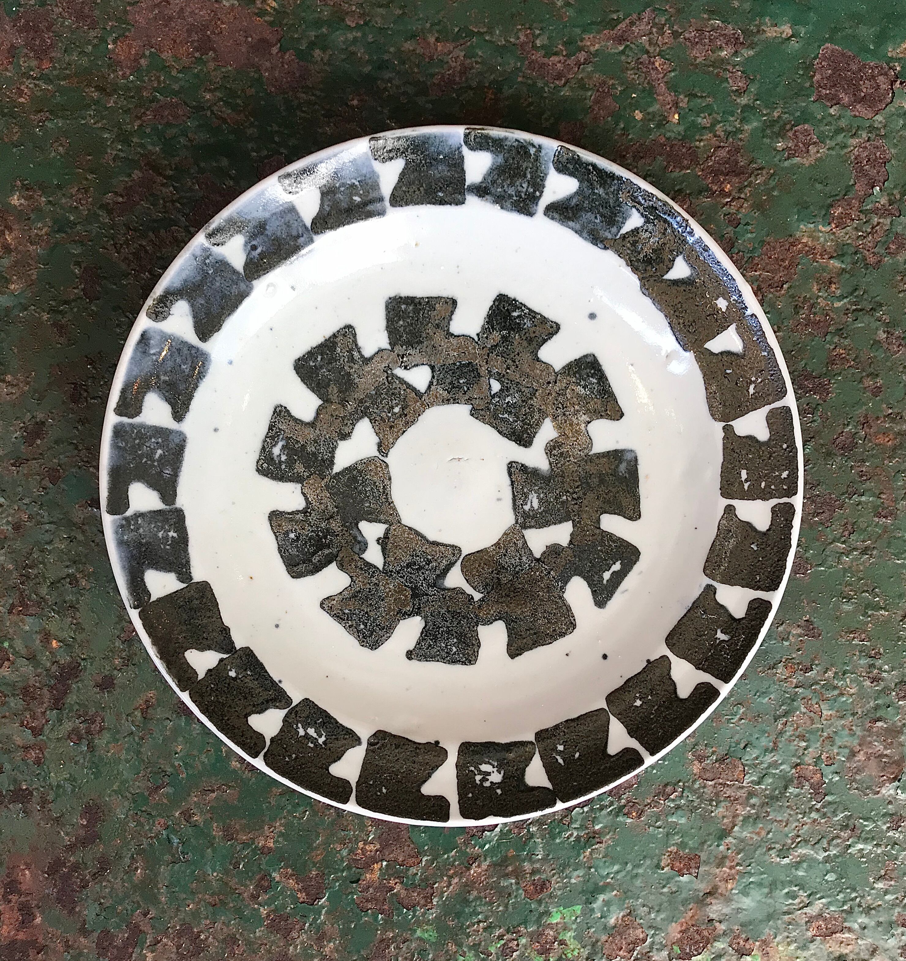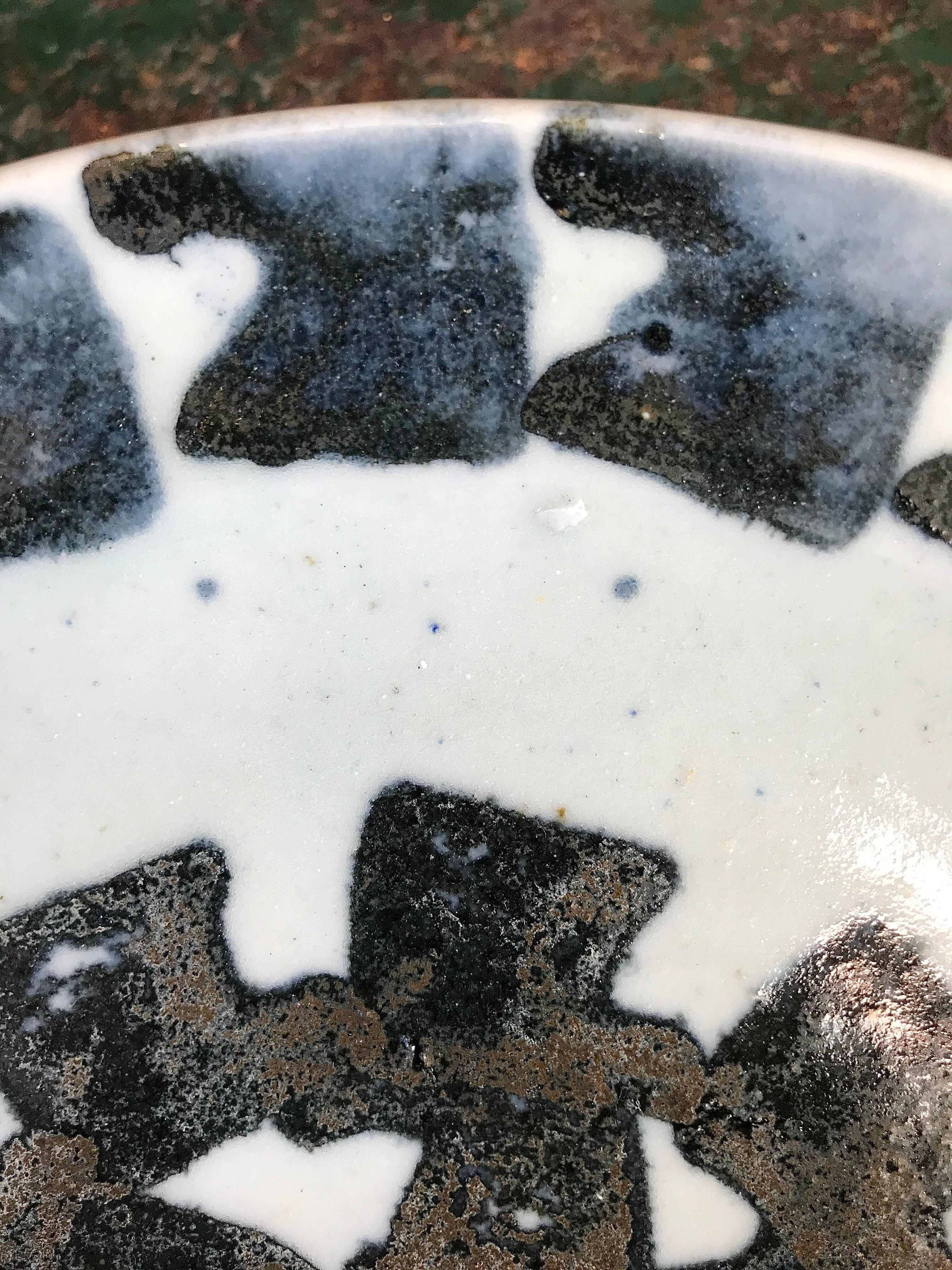 飴色の釉薬がかかった石皿などはたまに見かけますが、こちらは独特な模様がほどこされておりモダンな印象を受けます。