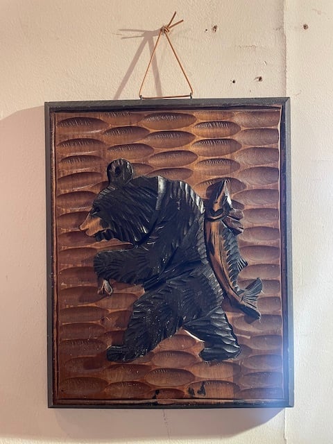 木彫りの熊の壁飾り。