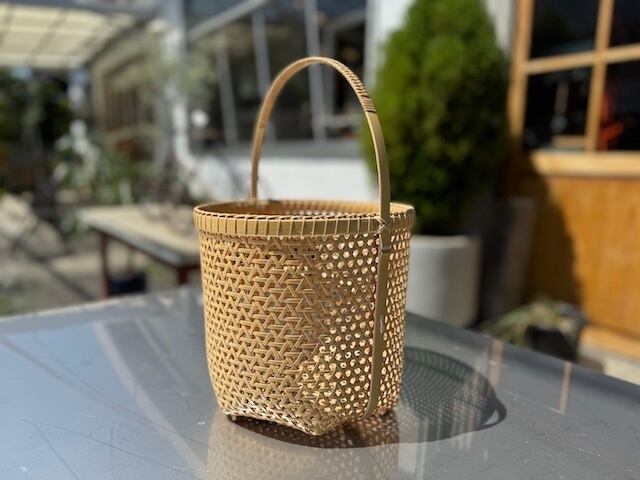 竹工芸家 石毛みほの鉄線編みバケツかご。